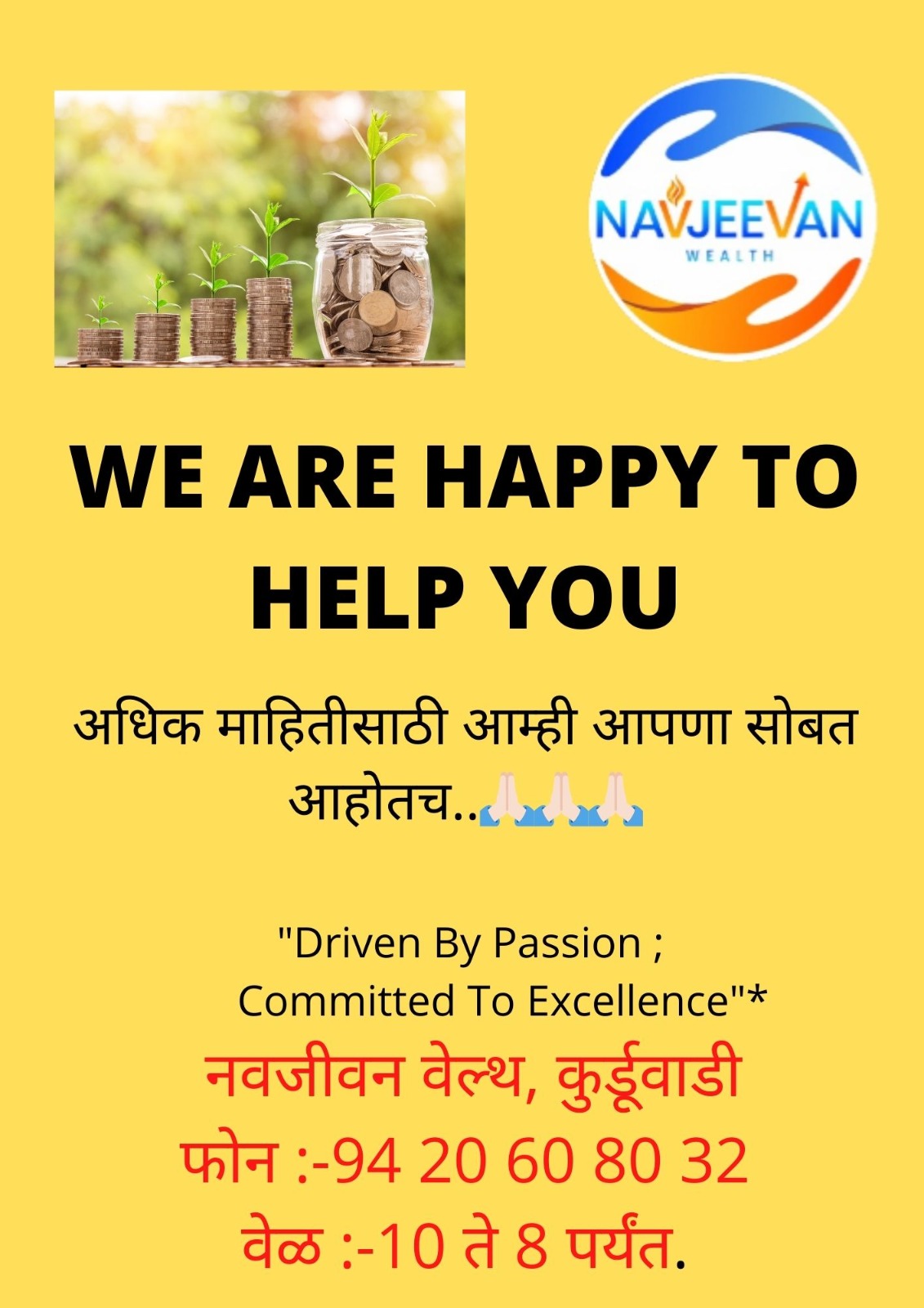 As a part of financial litrecy our main thought process is to clarify the Relationship of money with human life. Money is the medium for using relationship, health, materialistic things and all…. So, we are providing solutions about how to handdle money for all this. Our thought process is everyone should get his hard-earned money at the right Time he wants. We run this bussiness thinking on “driven by passion; commiteed to excellence”
